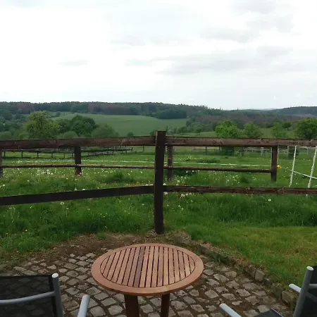 Terrasse-restauranten og et picnicområde er "Die Jockeysuite" Auf Unserem Reiterhof ferielejlighed som findes 2 km fra Raiffeisen Tower. Der er 65 km fra Koln-Bonn lufthavn.